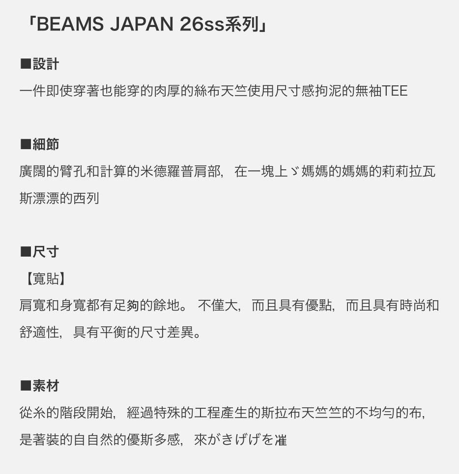 【BEAMS JAPAN】0425發售BEAMS JAPAN SLEEVELESS T-SHIRT