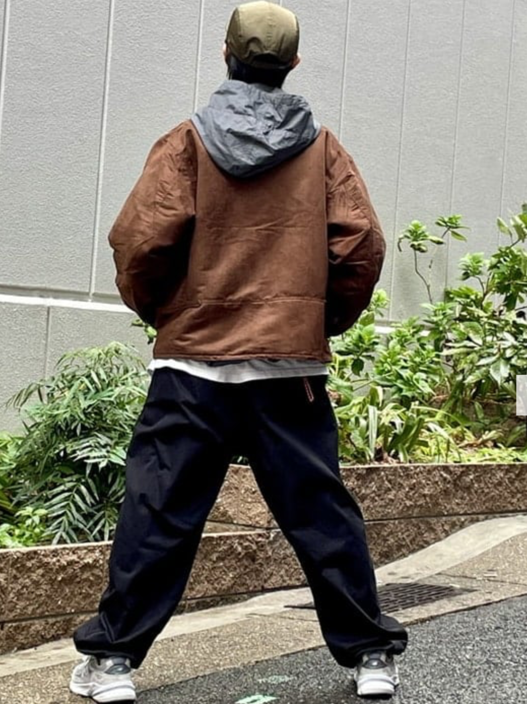 腋下、內股、臀部全部捲曲縫製,再現了當時的包裝感。 下襬是可調節的規格,可以改變輪廓。 右側前身裝有講究放入智慧手機等的尺寸感的口袋。