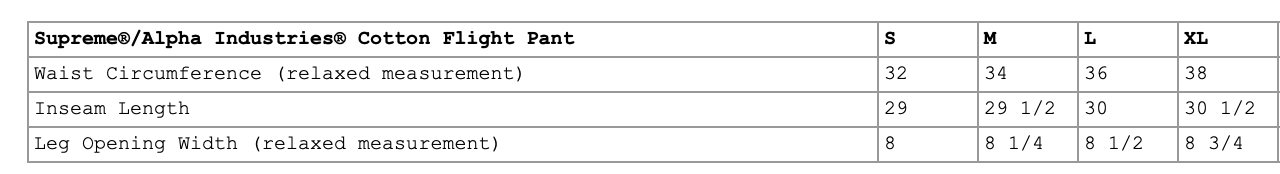 【Supreme】0418 WEEK 9 發售Supreme®/Alpha Industries® Cotton Flight Pant